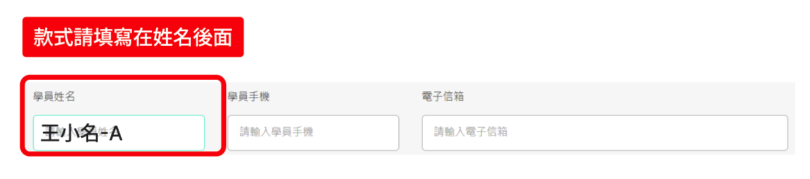 課程有三款不同造型,三擇一製作,請於報名時於學員姓名處填寫,範例:王小名A款